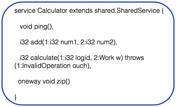 Here you can check the Thrift IDL (interface definition language). It is very C-like and it is an advantage because of simplicity and readability.
