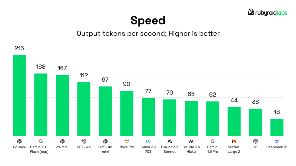 - DeepSeek R1: The LLM stands out for its affordability, offering much lower costs per token compared to many competitors. For example, DeepSeek-chat’s input cost per million tokens (cache miss) is $0.14, while DeepSeek-reasoner’s input price is $0.55 per million tokens—making it a budget-friendly choice for large-scale AI applications.