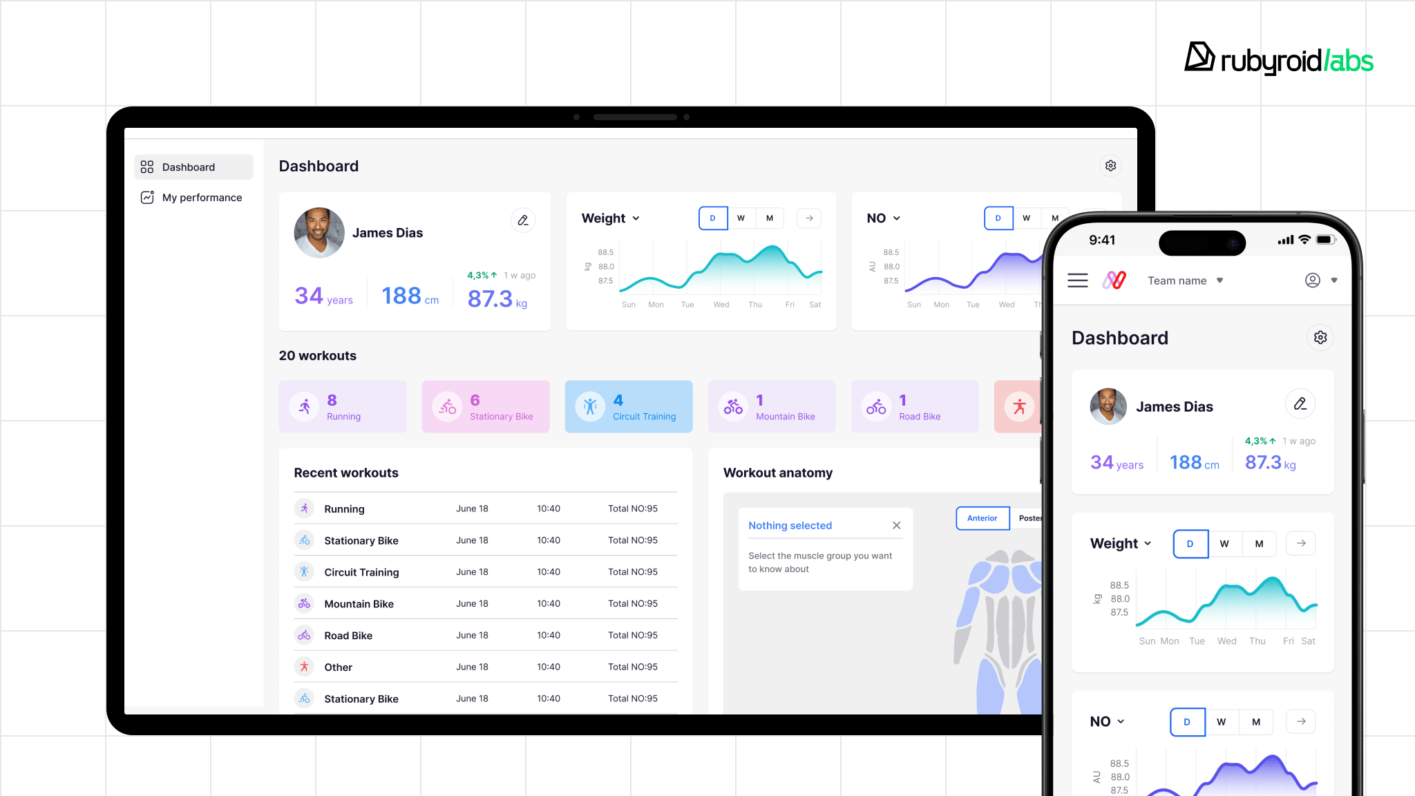 The client requested a comprehensive platform. It needed to collect, process, and analyze the data from the company’s innovative wearable device used for measuring muscle oxygenation (SmO2) and nitric oxide (NO) levels during athletes’ training sessions.