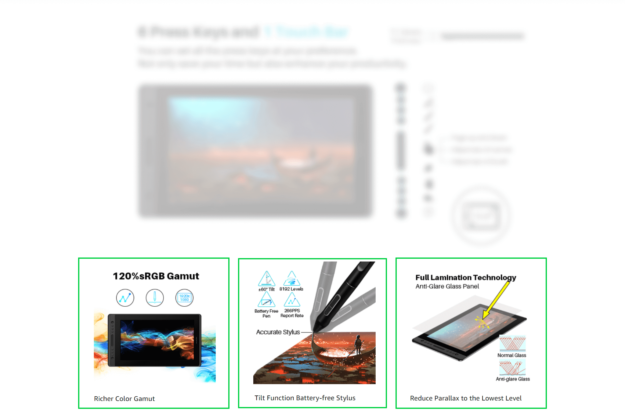 And make the parameter list easy to read. Use alternate background colors, icons and divider lines. This will help the customer connect the name of a parameter with what it means for the product. Also, avoid describing specifications in multiple columns because reading those could be difficult.