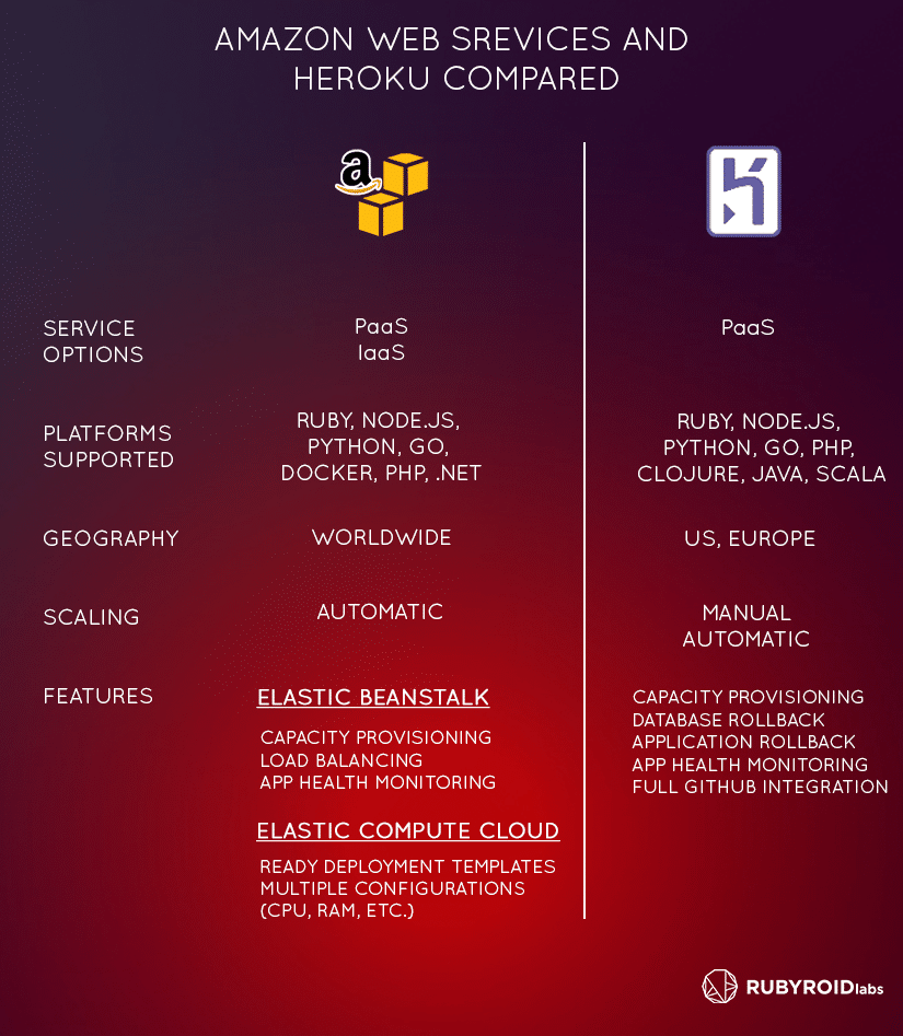 When it gets down to application hosting, quite often developers fall into a hard choice between Amazon Web Services and Heroku. Though both of them have their own advantages, quite often it is hard to tell, which suits best. Besides, in this case, an investigation takes tons of time.