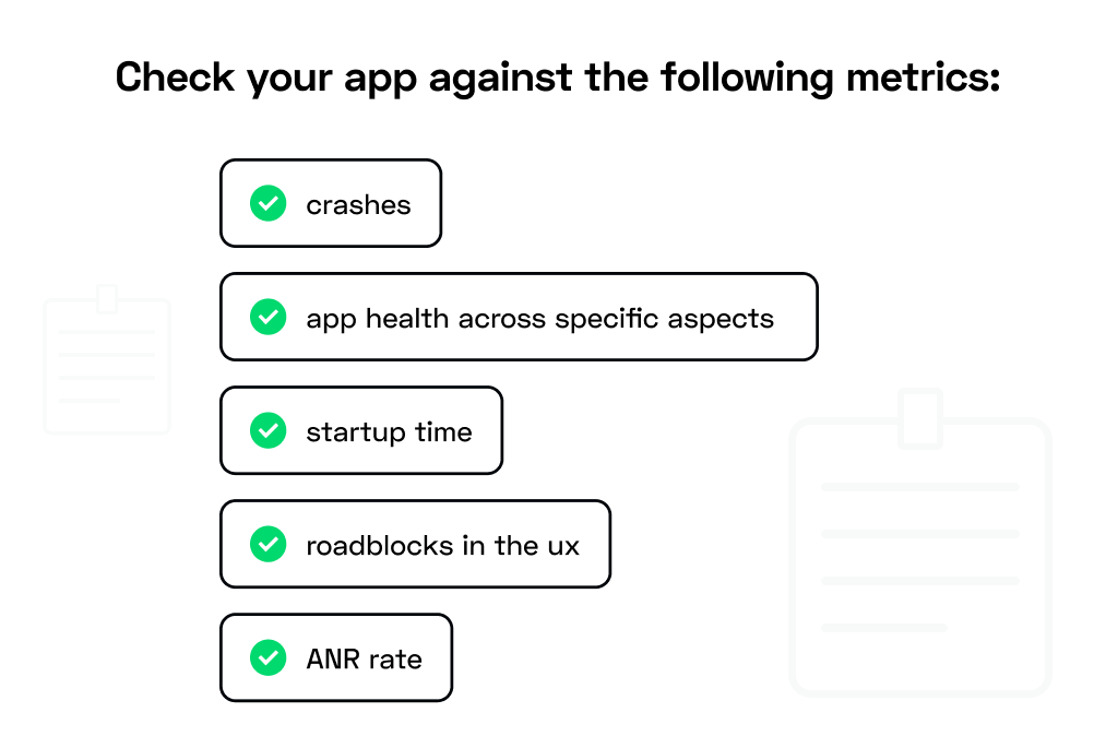 The best way to go about maintaining your app is by regularly checking it against specific metrics: