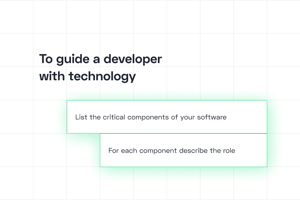 The best way to provide a starting point is to list the critical components of your software. These could include a website, mobile app, backend, databases, content management system, and others. For each component, describe the role it should play.