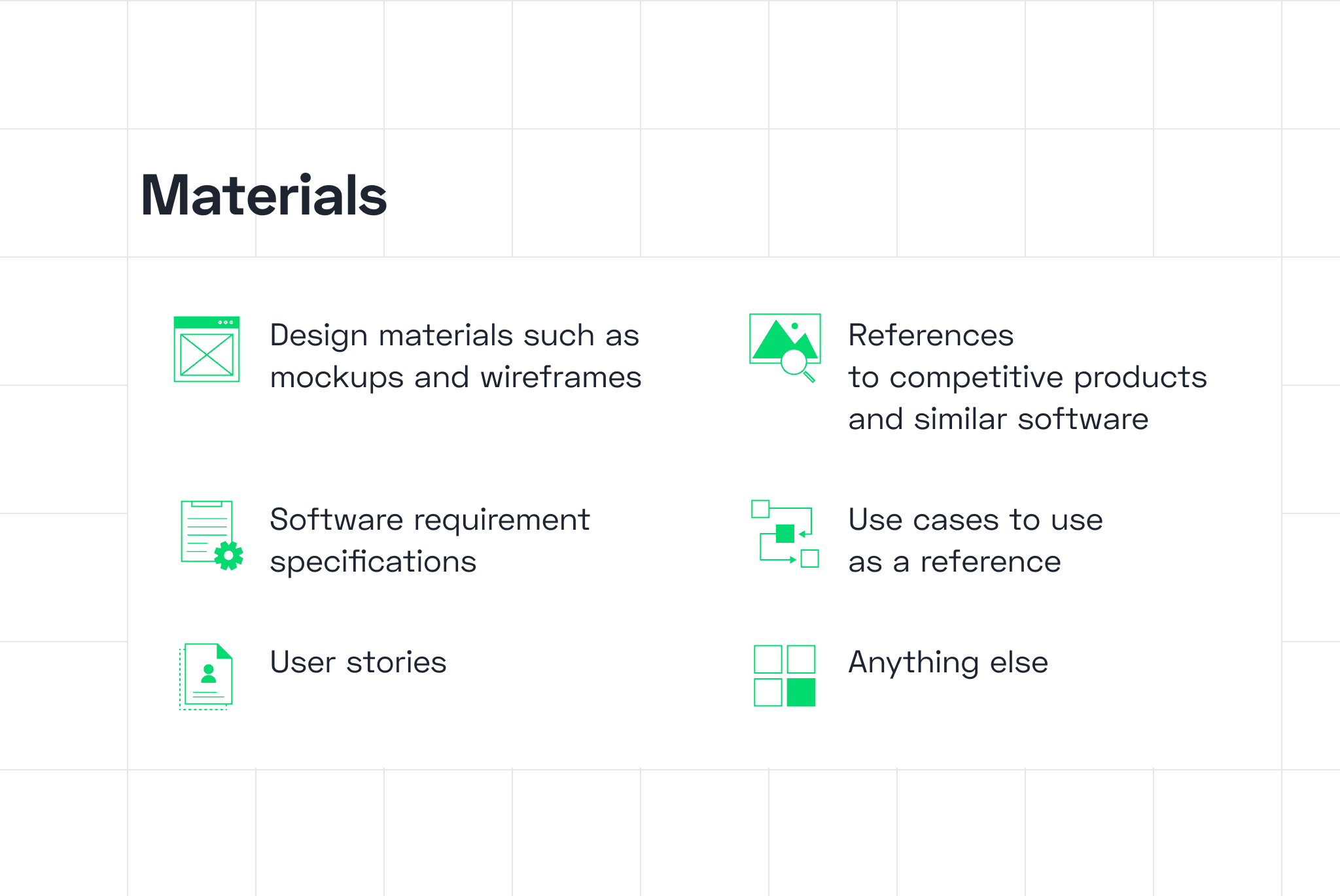 Finally, you might have already researched your market and technology to some degree or even put together a mockup. Your developer will need all the materials you have accumulated throughout.