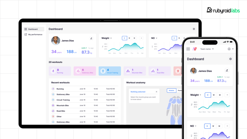 At Rubyroid Labs, our approach is to provide our clients with frontend choices that benefit their product potential. This is how we ended up using ReactJS on the frontend for one of our clients, NNOXX. We developed a platform that tracks data from a wearable device measuring nitric oxide levels in the blood. The platform offers various levels of analytics that customers can view through a mobile app or a web interface.