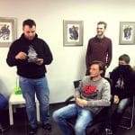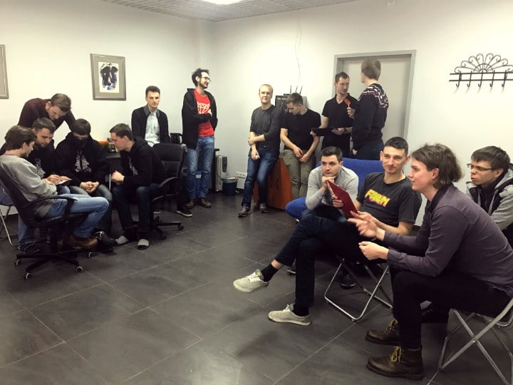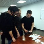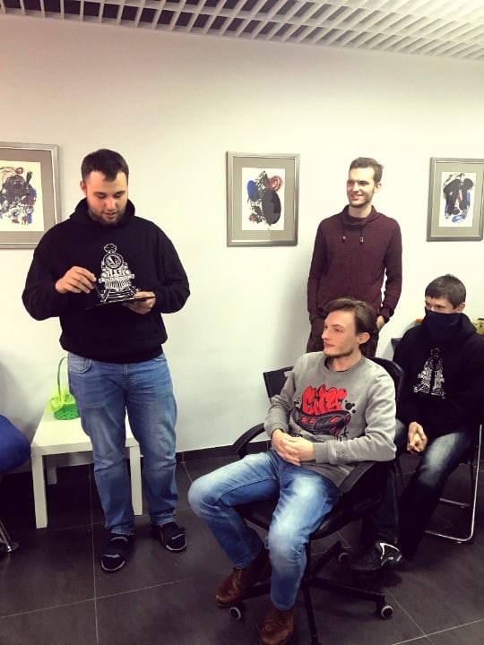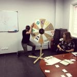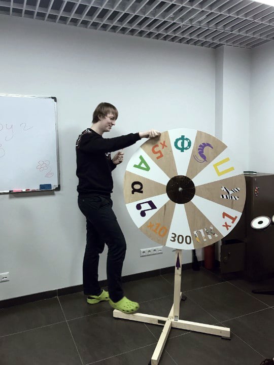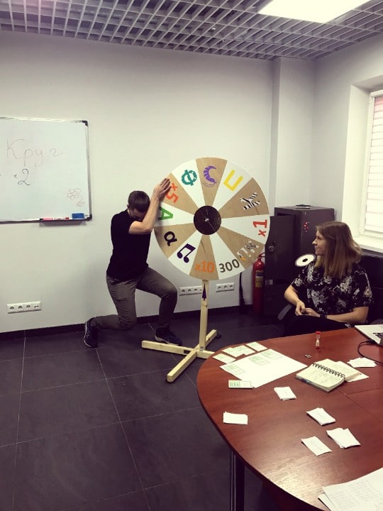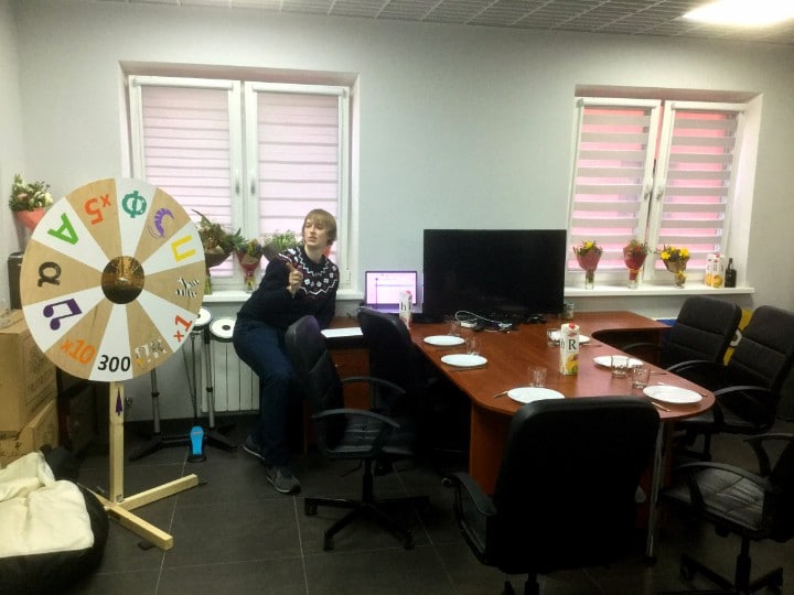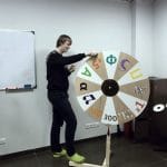 They even prepared a special quest wheel to pump the atmosphere up. The guys, split into 2 teams, spin the wheel and do the tasks they got. For each task completed they received game points. At the end, each team received special gifts from the girls, because there are no losers in Rubyroid Labs Team 🙂