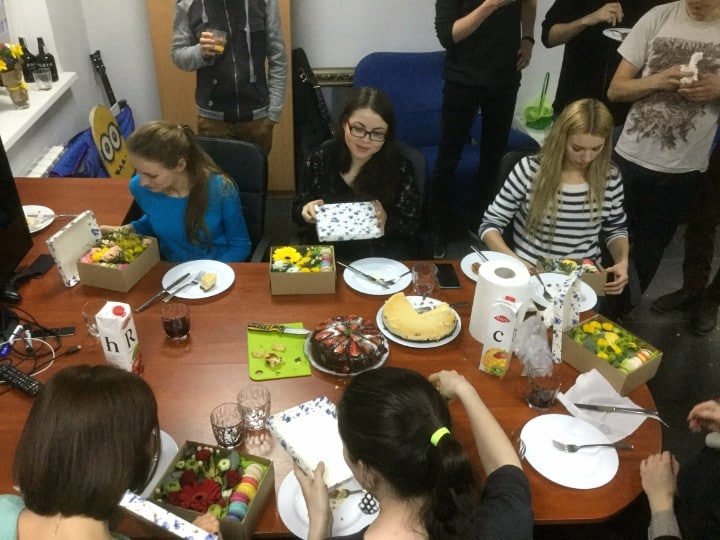 After that, it was guys turn to show their best on International Women’s Day, which takes part on March 8. And they did. To celebrate the day they decorated the whole office with flowers, put on some nice music from La-la-land and prepared something special for all girls. Each guy from Rubyroid Labs Team cooked his signature dish, which varied from lasagne, chocolate cake and cheese quiche to some sandwiches and onion rings. The girls were supposed to guess who cooked what, and sometimes it was a pretty hard thing to do. At the end, each girl got a flower box with some sweets. Everybody left the party jolly and with a stomach full.