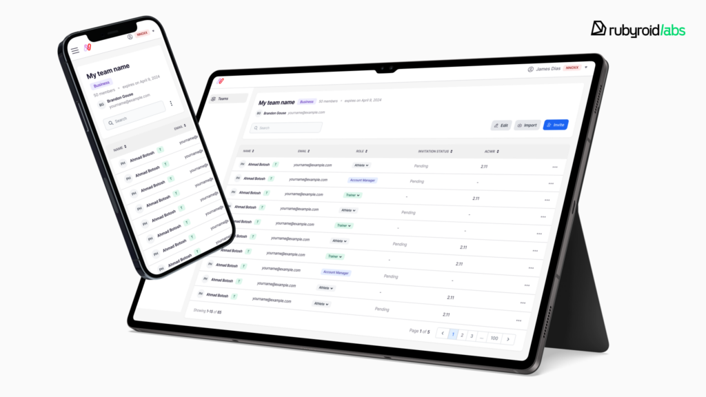Over the next three months, we delivered a working MVP with a full range of functionality tailored to each user type. Athletes could log in, manage their profiles, and connect with their teams. Trainers were able to create and manage team rosters, track performance data, and analyze workouts. Elite users and account managers each had their own dashboards and controls to access analytics and manage teams. The client had a functional product ready for testing with real athletes, and a clear picture of how the app could grow next.
