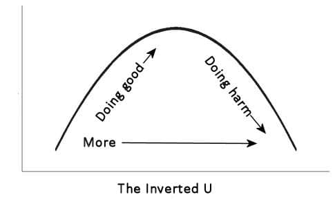As you see, the excitement from a purchase looks more like an inverted U. At first, the customer is happy with the choice available, but then big choice leads to negative emotions rather than positive. So the graph of dependency of choice against emotions should look something like this.