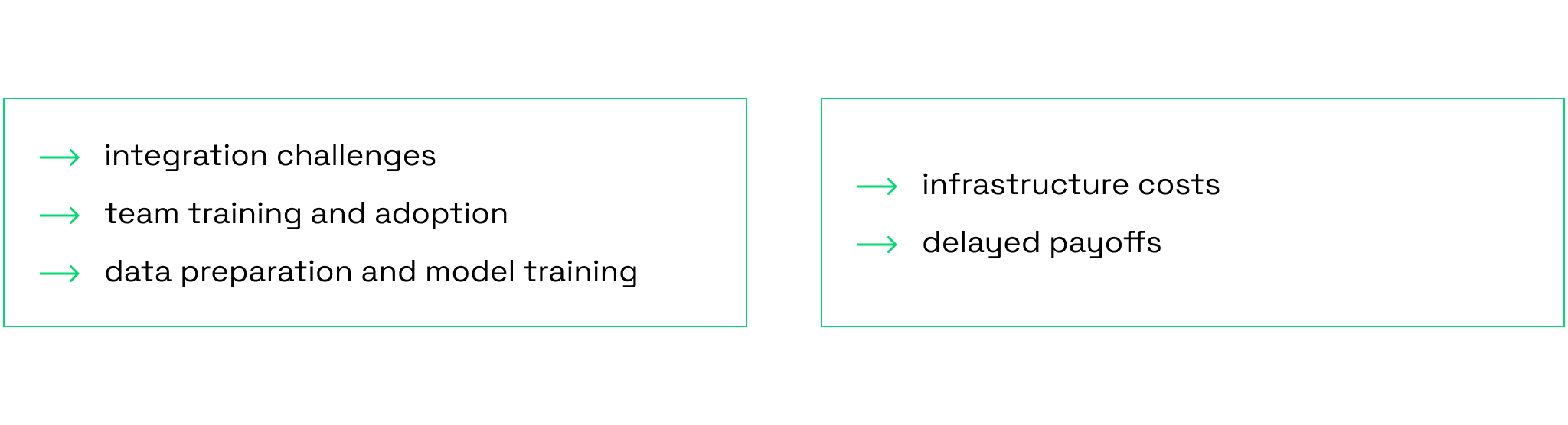 Running AI at scale isn’t cheap. Whether it’s cloud computing power or specialized hardware, infrastructure needs can quickly inflate your spending. These hidden costs can quietly chip away at what initially looked like a promising investment.