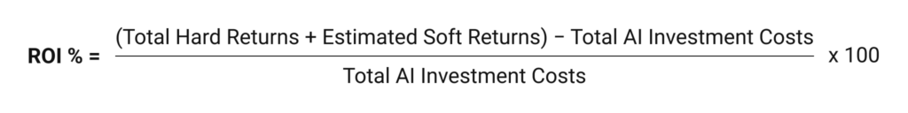 The general formula for how to calculate ROI of AI in apps is as follows: