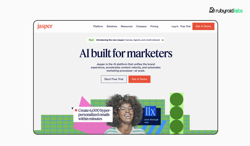 Thus, marketers use Jasper to speed up content production, maintain brand voice, and scale campaigns across platforms like Google Ads, Facebook, and email. This AI assistant generates high-quality marketing copy, blog posts, product descriptions, email content, and ad copy in seconds.