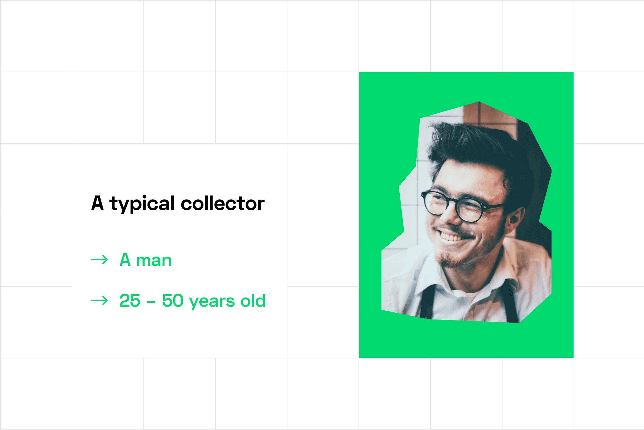 For instance, if you’re building a postage stamp catalog app, your target persona is a typical stamp collector. A typical collector is a man, and more than 50% of those collectors are between 25–50 years of age, and 35% are 18–25 years old.