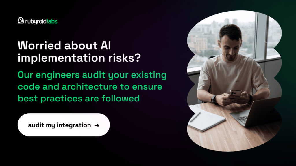 At Rubyroid Labs, this process begins the moment a client comes to us with an idea for an AI-driven feature or a full AI product. We start looking at how the AI part will actually be used and what role it should play in the product.
