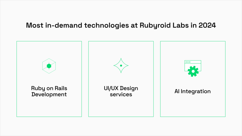 Our most requested service remains Ruby on Rails development, continuing its strong demand throughout the year.