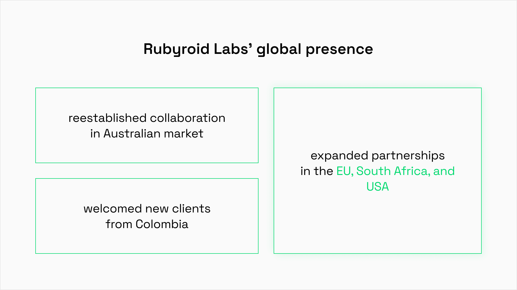 - We strengthened our presence in the EU, South Africa, and the USA through expanded partnerships.