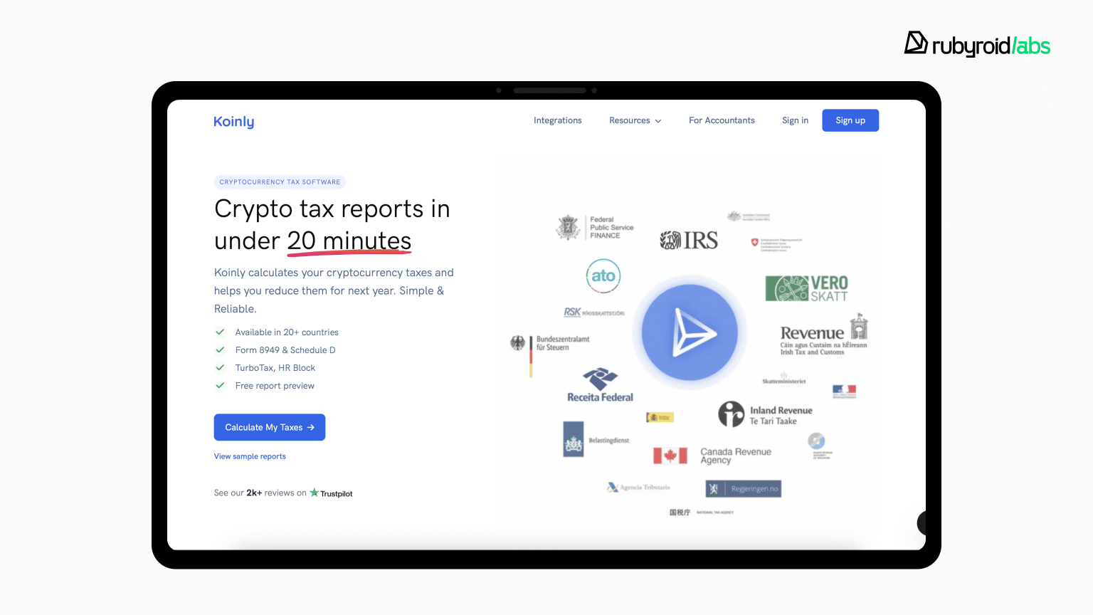 Cryptocurrency tax software. A leading crypto tax reporting platform used in over 20 countries. We supported 800+ integrations, improved data accuracy by 20%, and reduced user drop-off by 25%.