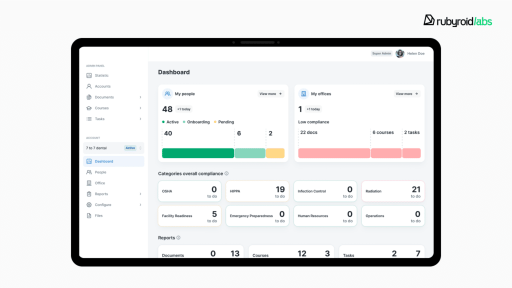 Dental operations platform. A U.S.-based system for managing dental compliance and workflows. We fixed critical bugs, redesigned the entire UI/UX, and improved usability across all user roles.