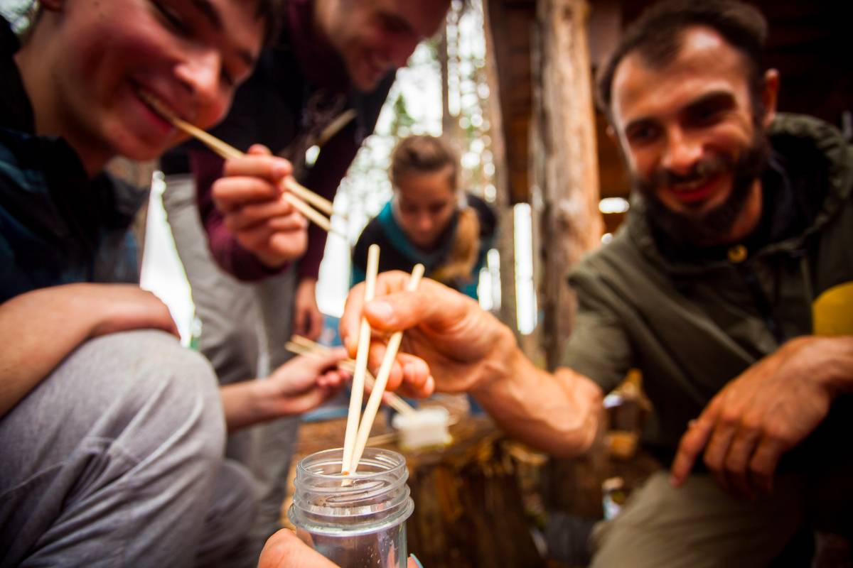 So the survival quest began! Each had only 10 minutes to find the required base in the forest, run to it and complete a task to receive points. If there was some time left, they could complete bonus task to receive bonus points. These were very funny games like putting rice from one bowl to another using chopsticks or building the tallest tower with matchboxes. So we had a great chance to practice our wit and sports skills. The quest was really great for team building; it helped us to enjoy the company of each other even better.