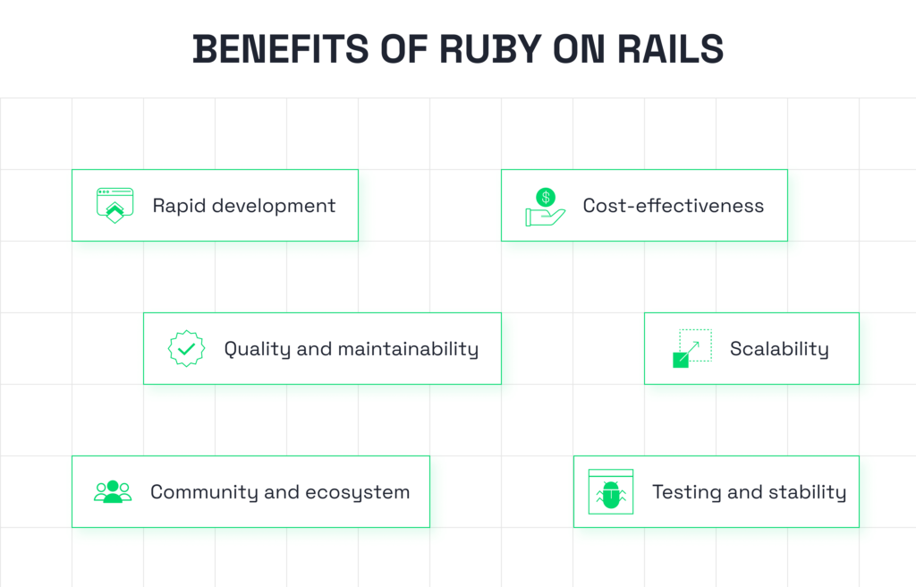 Ruby on Rails prioritizes automated testing, which reduces the likelihood of bugs and software issues. This emphasis on stability is crucial for startups and businesses that require reliable applications to build and maintain user trust, a fundamental aspect of growth and success.