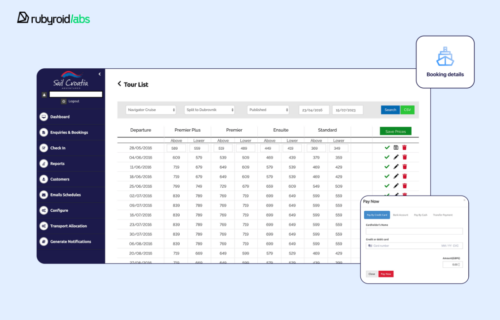 Example: A CRM system built by our RoR team for one of travel operators, Sail Croatia.