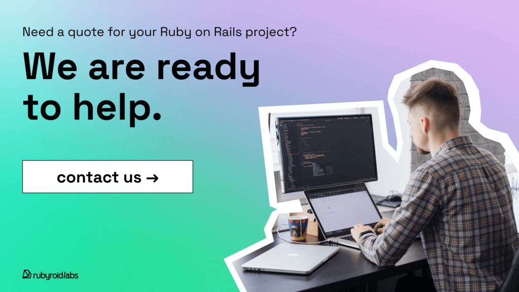 As one of the top-ranking Ruby on Rails development companies, according to Clutch.com, Rubyroid Labs boasts over 40 five-star reviews and a portfolio exceeding 300 projects for startups and companies of all sizes. If you have an idea for a web app, drop us a note. We’ll be happy to discuss your project’s specifics at your convenience.